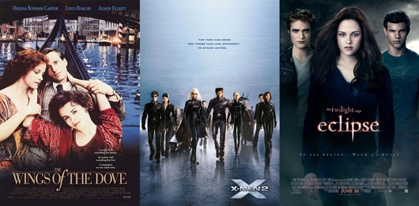 6. Love these. I haven't seen Twilight, but Wings of a Dove is a brilliant movie, and the X-Men triangle is iconic!